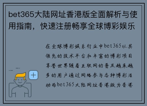 bet365大陆网址香港版全面解析与使用指南,快速注册畅享全球博彩娱乐